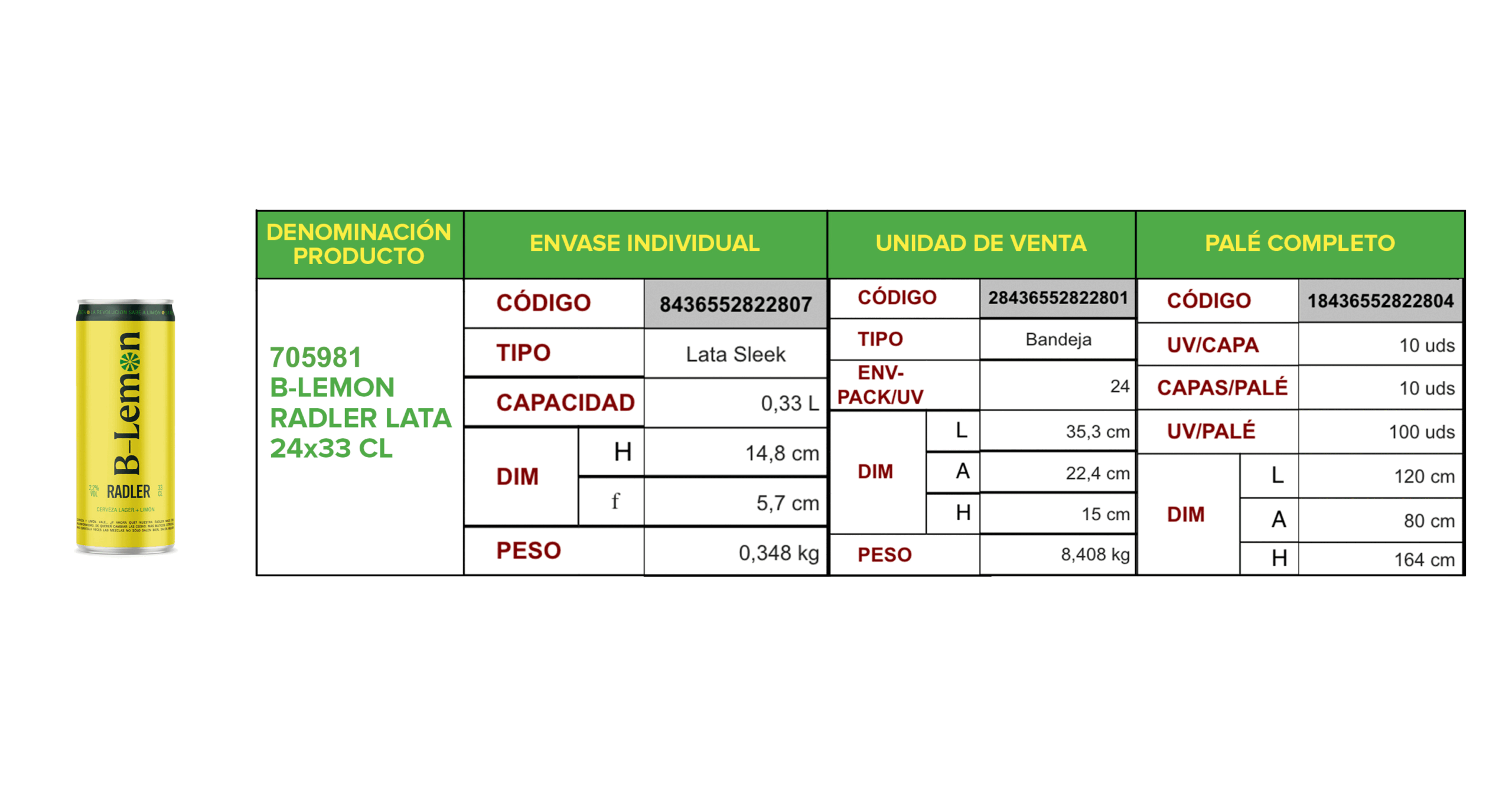 B-Lemon es la frescura embotellada en forma de Radler. Se trata de un tipo de cerveza que, por su bajo contenido alcohólico, su gran efervescencia y su alta capacidad refrescante, tiene cada vez más adeptos, que eligen momentos variados para degustarla, y no solo en épocas de calor y buenas temperaturas. Con un equilibrio entre el característico sabor de la cerveza lager y la refrescante acidez del limón, verás que las mezclas no solo salen bien, salen mejor. Está disponible en un pack de 24 latas de 33 cl.