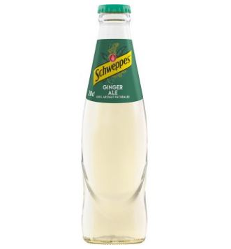 Schweppes Ginger 0,20L Retornable. Refresco carbonatado con sabor intenso a jengibre, ideal para combinados y coctelería profesional.