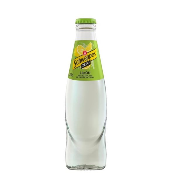 Schweppes Limón 0,20L Retornable. Refresco con gas y sabor intenso a limón, ideal para coctelería o consumo individual en hostelería.